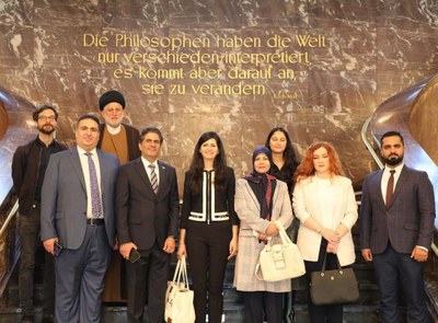 The Research Programme on Religious Communities and Sustainable Development invited an Iraqi delegation of academics, religious actors and religious minoritiy activists headed by Dr. Saad Salloum to visit Humboldt University's main campus. The guests were taken on a tour to learn more about the history of the university. The delegation and the Research Programme discussed different ways for further collaboration and explored exchange opportunities for Iraqi students. The delegation members were: